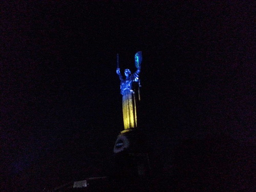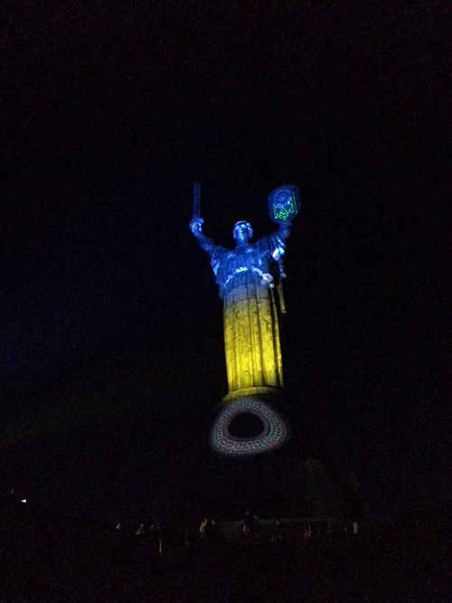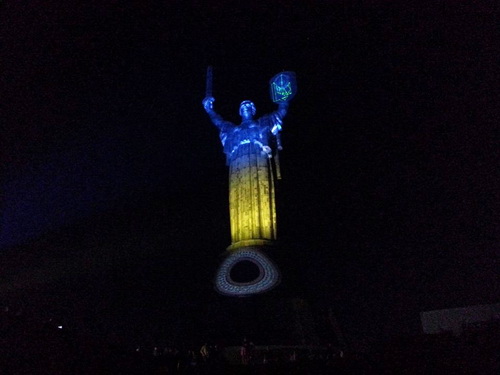 "Батьківщину-матір" у Києві "пофарбували" у синьо-жовті кольори (фото)