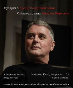 3 березня, о 19.00, в рамках проекту "Війна і Слово", відбудеться зустріч з художником і драматургом Лесем Подерв’янським.