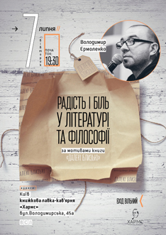 7 липня о 19:30 у інді-книгарні Хармс відбудеться лекція Володимира Єрмоленка «Радість і біль у літературі та філософії // за матеріалами книжки «Далекі близькі».