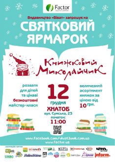 12 грудня, напередодні улюбленого дитячого свята — Дня святого Миколая, видавництво «Віват» (група компаній «Фактор) проведе у ХНАТОБі ім. М. В. Лисенка (вул. Сумська, 25) традиційний книжковий ярмарок «Книжковий Миколайчик».