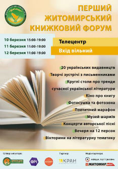 Житомирський книжковий форум «ДієСлово» триватиме 10-12 березня.