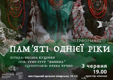 3 червня о 19.00 у Мистецькому Арсеналі (вул. Лаврська 10-12, простір Кінозал) відбудеться перформанс Оксани Куценко та етно-гурту «Дивина» «Пам´яті однієї ріки».