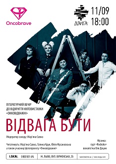 У вівторок, 11 вересня, у кав´ярні «Дзиґа» (вул. Вірменська, 35) відбудеться літературний вечір «Відвага бути» до відкриття фотовиставки «Онковідважні» (Oncobrave).