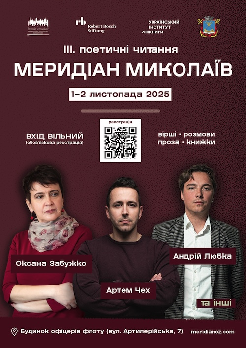1–2 листопада 2025 року відбудуться дві паралельні масштабні літературні події – «Поетичні читання Меридіан Одеса» та «Поетичні читання Меридіан Миколаїв».