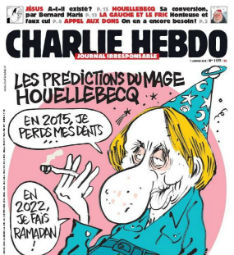Як повідомляє The Guardian, за кілька днів до розстрілу працівників журналу, у виданні вийшла карикатура і на самого Мішеля Уельбека. Після трагічних подій письменник повідомив, що припиняє будь-які дії з реклами твору на знак скорботи за загиблими. Серед них був і близький друг Уельбека. «Не існує жодних обмежень на свободу вираження думки, жодних перепон», − прокоментував письменник.