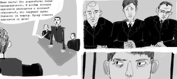 Російська громадська організація "Открытая Россия" створила комікс "Процес", присвячений судовим засіданням у справі української льотчиці.