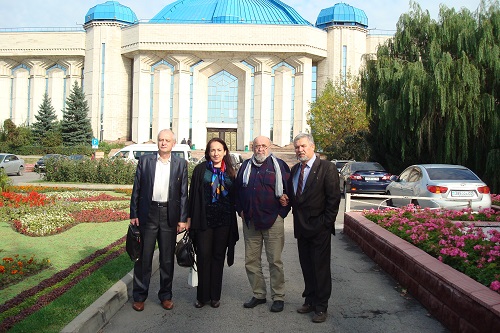 До Казахстану ми приїздили на запрошення Казахського національного університету імені аль-Фарабі. Це – найбільший і найпрестижніший вуз у цій країні. Знаходиться він в Алмати: університет – таке собі місто в місті, що займає територію близько 90 гектарів! В університеті на 15-ти факультетах навчаються 17 тисяч студентів. Нас вразили і ошатні корпуси, й мальовничі пейзажі (у студмістечку – зелено, багато троянд, бачили білочок, яких охоче пригощають і студенти, і викладачі, й гості цього дивовижного оазису).