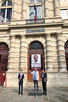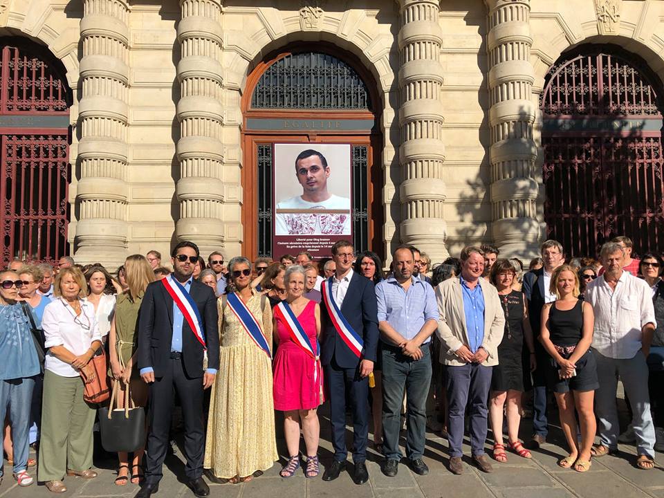 На фасаді мерії 4-го округу Парижа вивісили портрет Олега Сенцова.